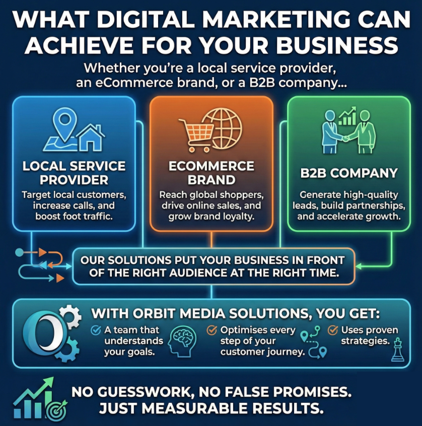With Orbit Media Solutions, you get a team that understands your goals, optimises every step of your customer journey, and uses proven strategies — no guesswork, no false promises. Just measurable results.